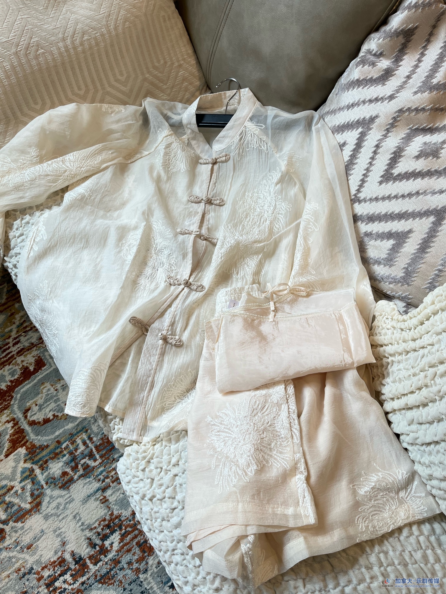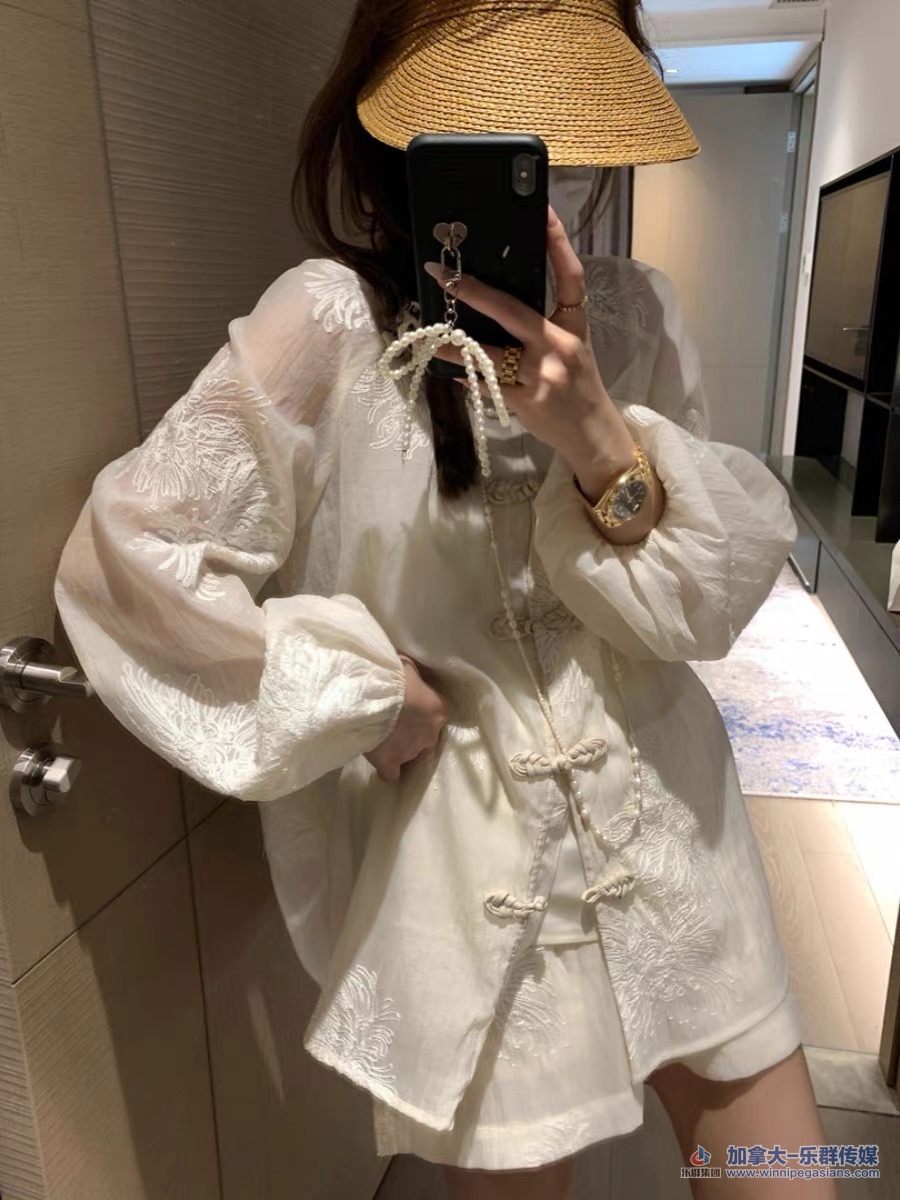1. 新中式长袖衬衫国风盘扣衬衣。 三件套L码(衬衣+吊带+短裤) 全新带标签上衣胸围: 122cm 衣长74cm 短裤腰围72cm 松紧腰。   50刀(全新带标签)' V0 X0 C# P3 j8 X/ k